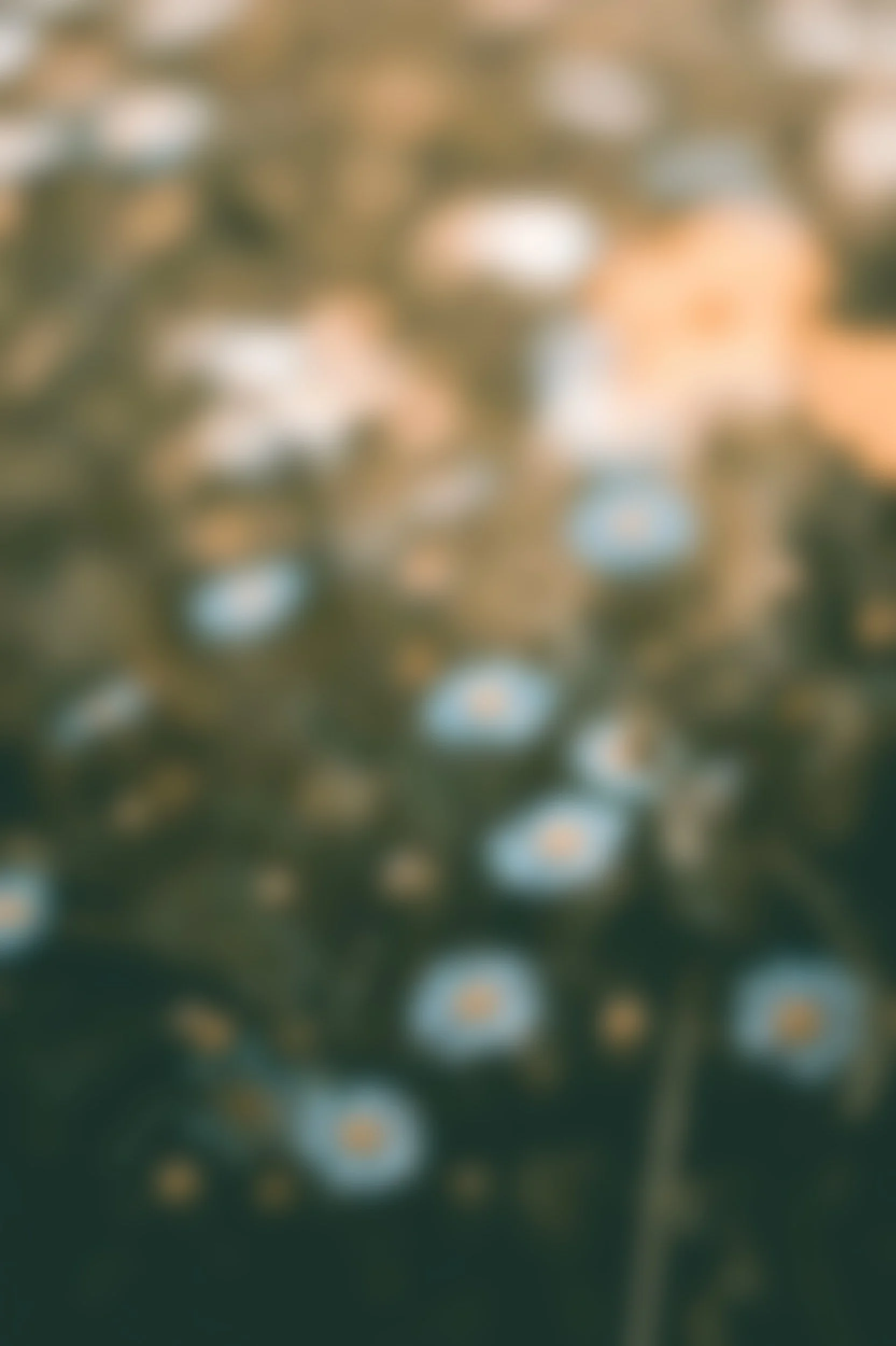• Field of yellow and white wildflowers with green grass and blurred background