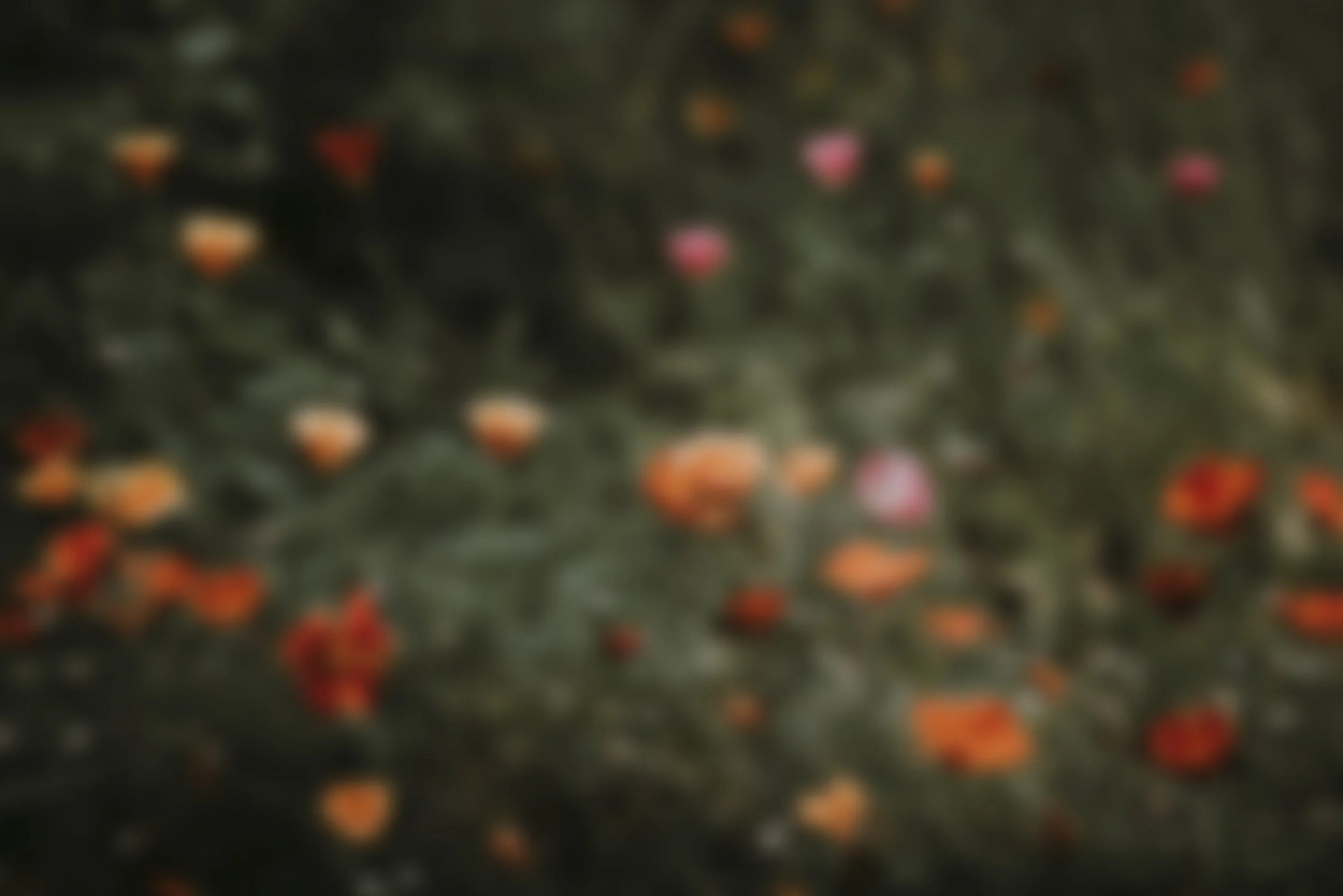 • A field of blooming orange and pink poppy flowers with green foliage in the background.